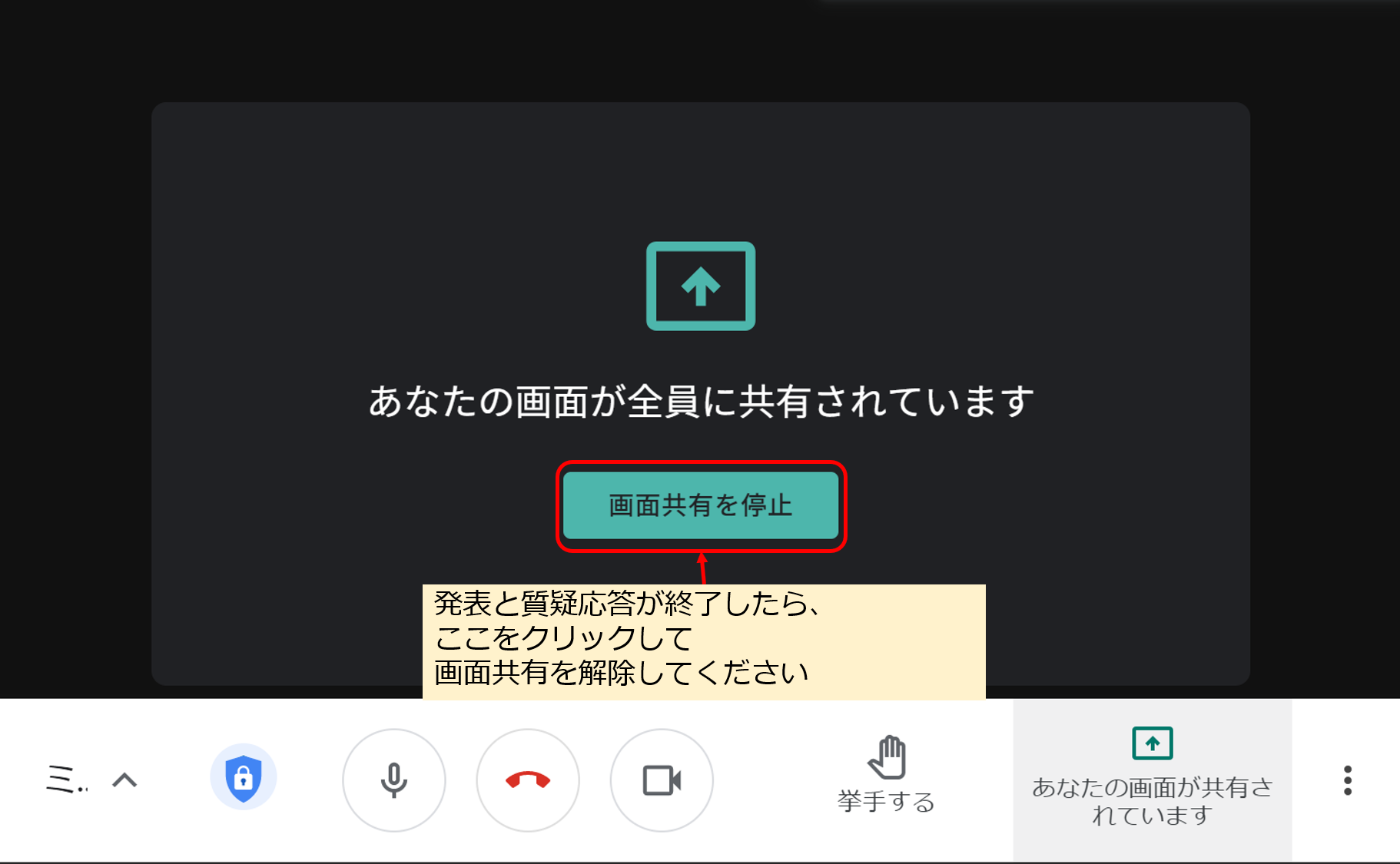 - 発表者の人は、事前にPowerPoint(またはその他のプレゼン用ソフト)を起動しておいてください。自分の発表順が来たら、座長の指示に従い、画面共有でPowerPointのウィンドウ(または全画面)を選択し、その後スライドショー(PowerPointの場合)を開始してください。